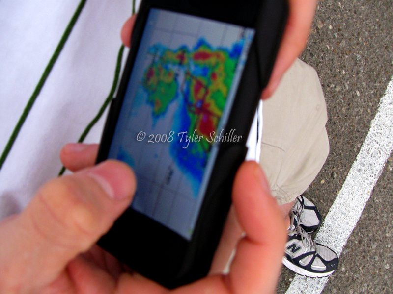 Who doesn't carry their cell phone with them at all times these days? This person does brings up a good point though. I went storm chasing on July 22, 2010 in Fort Atkinson as a tornado warned storm approached our position. My chase partner and I pulled over on a road to watch the storm and a gentleman past us jogging. He was startled and unaware that a Tornado Watch had been issued 4 hours prior. In this case, I would probably advise citizens to check the weather forecast before you head out for a jog or swim.