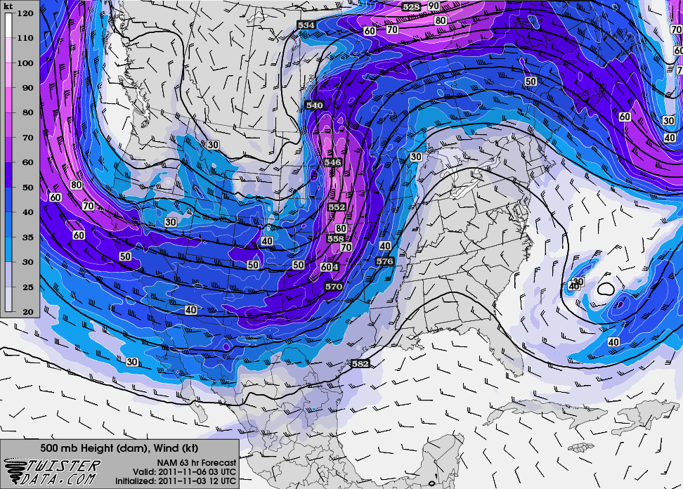 The 500mb plot shows a strong 90 knot jet max plowing through the region. The computer models will continue to offer different solutions since the jet energy is well out to sea. The upper air network will have to sample the full complexity of this system to determine where it will go and how strong it will be.
